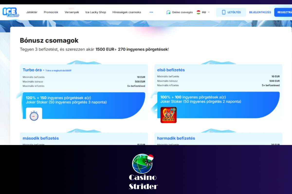 Minden promóciós kóddal jár valamilyen befizetési feltétel. Van, ahol már 1€-tól feltöltheted az egyenleged, máshol viszont 10€ vagy 20€ kell. Az Ice Casinónál általában 10€ a minimum, mert ez a platform legkisebb befizetési összege.