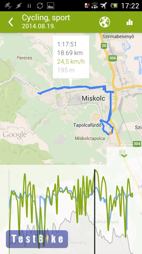 - Bár sokféle tracking programot kipróbáltam hosszú távon is (Strava, SportsTracker, MapMyride) a távolság szemptonjából ez volt a legpontosabb