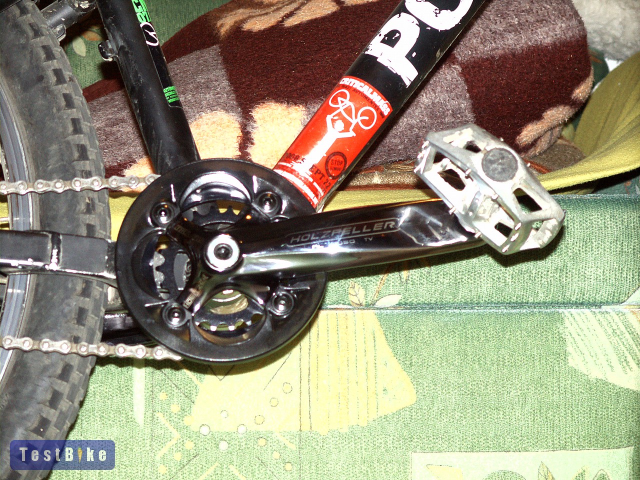 ...az önlehúzó csavarok gyakran lazulnak, kb 5 tekerés után meg kell húzni őket. Aztán a rockring az valami iszonyat gyenge, reped, törik meg minden. Elég ha túl erősen húzod meg és már paff hallod is ahogyan reped! A holzfeller felirat seperc alatt lekopik.