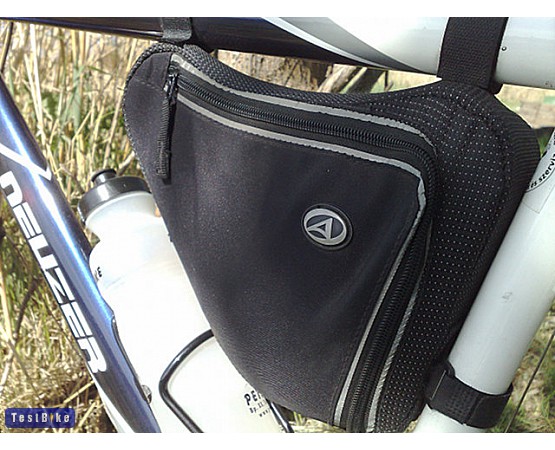 Szerelés – A táska szerelése egyszerű, a vázon futó bovdenek miatt azonban némi figyelmet igényel. Felszerelhető a kormányhoz vagy a nyereghez közelebb. Két szalaggal kell hozzáfűzni a felső vázcsőhöz, illetve egy másikkal rögzíteni az alsó vázcsőhöz vagy a nyeregvázcsőhöz. A tépőzáras szalagok olyan hosszúk, hogy többszörösen átérik bármelyik elemet. A vázon futó bovdenekre vigyázni kell: ha a vashoz szorítjuk őket, nem fog megfelelően működni a hátsó váltó stb. A felfogató szalagok és az alájuk kerülő por sajnos csiszolják a zománcozást. (Védelem gyanánt megteszi a széles ragasztószalag, habár ez sem nem tökéletes, sem nem szép megoldás.) A táska bizonyos helyzetekben a kulacstartóval, illetve a benne ücsörgő nagyobb flaskával összeakadhat.