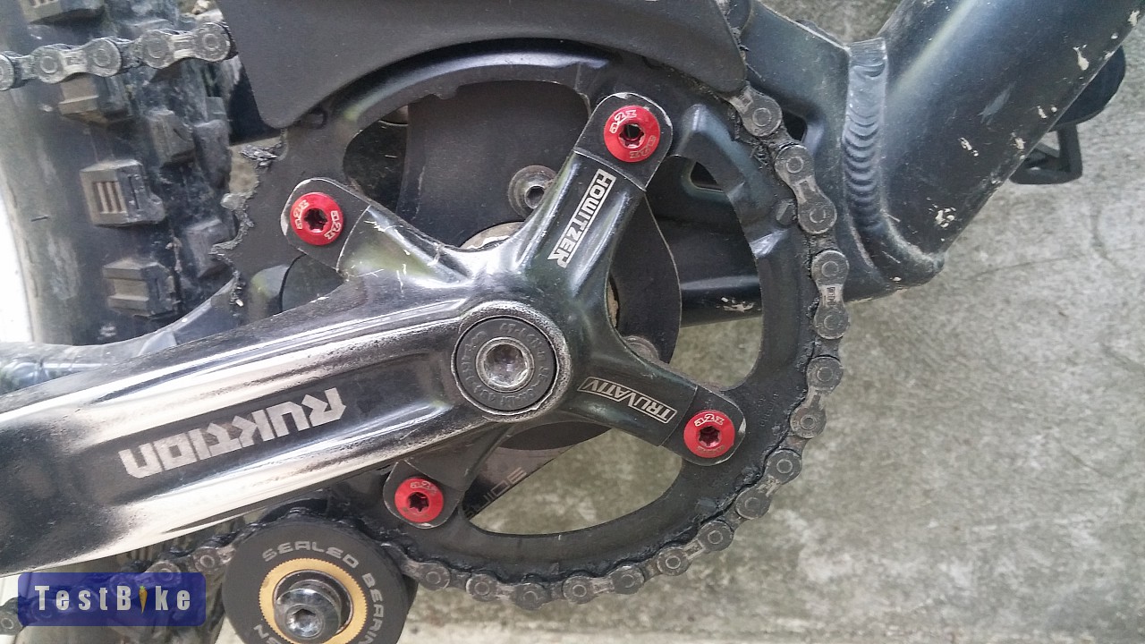 Elég merev, nem igazán hajlamos a hajlásra még nagyobb terhelés alatt sem. Én singlespeed-el használom és tökéletes, jól fut, nem dobálja a láncot, nem pattog, nem kattog. Több mint 3 éve hazsnálom szóval nyugodt szívvel mondhatom hogy tartós. Használtam már rockring-el is és nincs rá semmilyen hatással, nem csavarja.