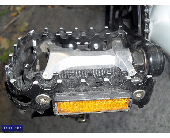 Előző bicajom gyárilag szerelt, csapnivaló műanyag pedáljának kiváltása okán tettem szert rá. Immár a második gépen szolgál, és 12 000 km után is nagyjából úgy fut, mint új korában. Simán forog, nem ad hangot; a csapágyak nem szorulnak, nem is kotyognak. Festése (az enyém fekete színű) csupán a taposó felület fogainak koronájánál kopott le. Néhányszor már földet is ért, de a pedáltengely nem görbült el, csupán a pedáltest alumínium lemezeiből horzsolódott le némi anyag. Meggyőződésem: ha olyan szerencsétlenül esik a bringa, hogy ez a pedál használhatatlanná válik, akkor kisebb vagy nagyobb mértékben a gép is összetörik. Por, eső és sár nem ártanak neki, a téli sós lé azonban nyomot hagy rajta. A dupla fogazott lemezek valójában nem a tapadást növelik – ahhoz elegendő (vagy talán jobb) lenne egy lemez is –, hanem a lábbelit kímélik. Azért is választottam ezt a típust, mert korábbi pedáljaim csúnyán megrágták a cipőimet. Ennél a pedálnál a cipőtalp elhasználódása elviselhető mértékű. A nagyobb felület miatt kevésbé kopik a lemezek anyaga is, ez azonban itt aligha számít: nyilván előbb fog tönkremenni a csapágyazás, mintsem a lemezek látványosan elhasználódnának.